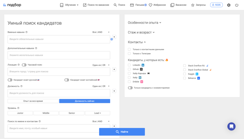 Эти инструменты собирают информацию сразу из нескольких источников (GitHub, Habr, LinkedIn и т.д.), настраивают рассылки и автоматизируют общение. Это сразу дает общую картину о кандидате и его навыках.