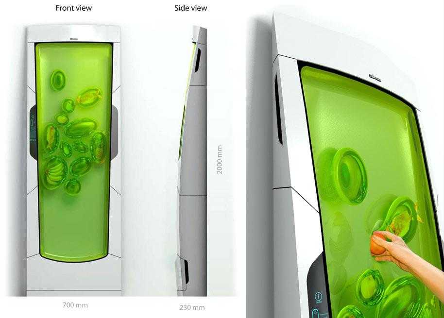 Размер Bio Robot Refrigerator меняется в зависимости от степени наполнения. Еще одно достоинство прибора — автоматический подбор оптимальной температуры. Кроме того, биохолодильник можно разместить где угодно, например, прикрепить к потолку.