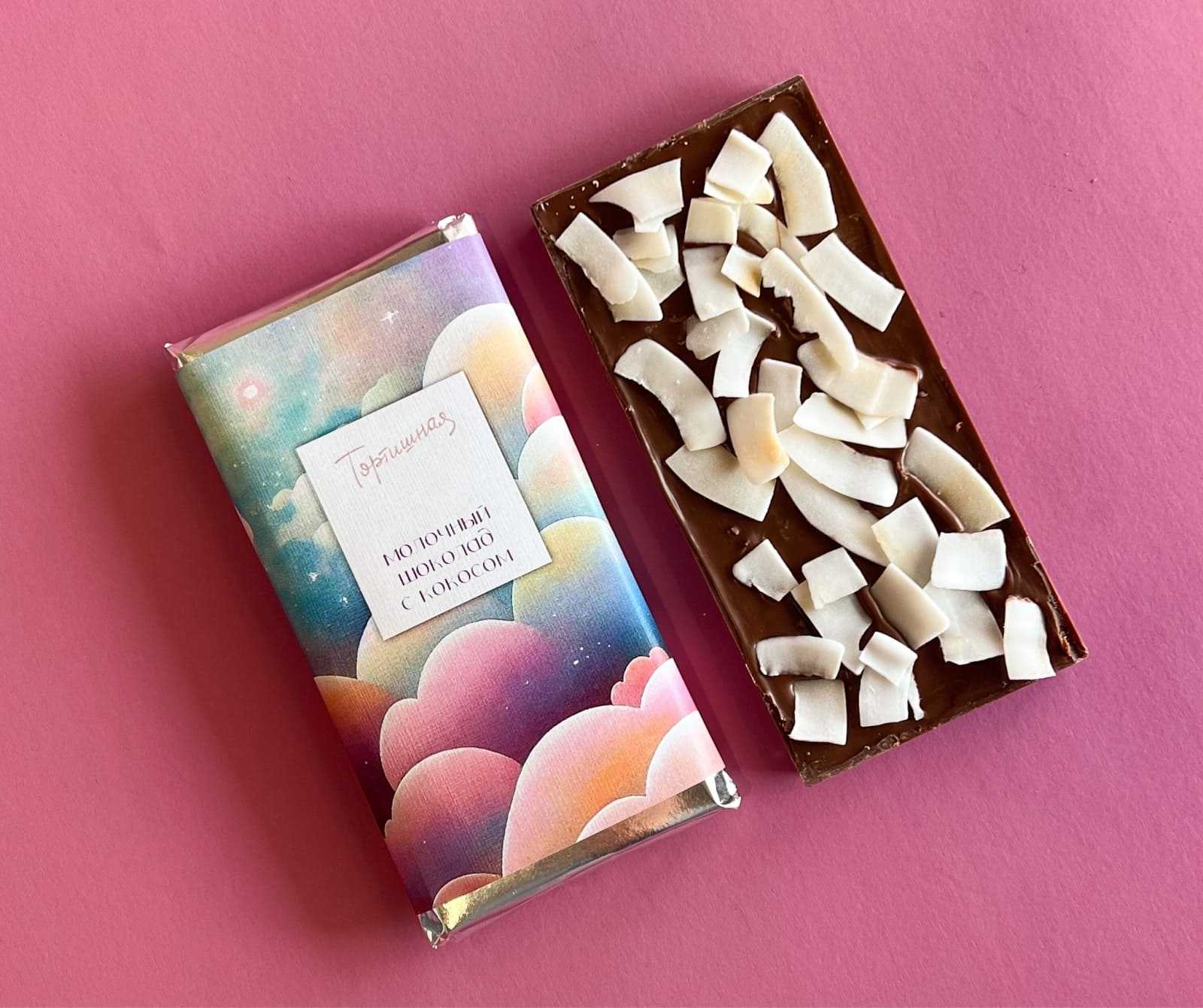 Ещё один кейс — от кондитерской «Тортишная». Здесь с помощью нейросети создали упаковку для шоколада. Выглядит очень стильно