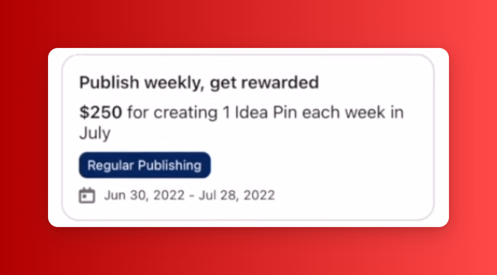 Pinterest Creator Rewards — это программа для авторов, которая позволяет им получать доход за создание оригинальных пинов-идей в ходе выполнения ежемесячных заданий от Pinterest.