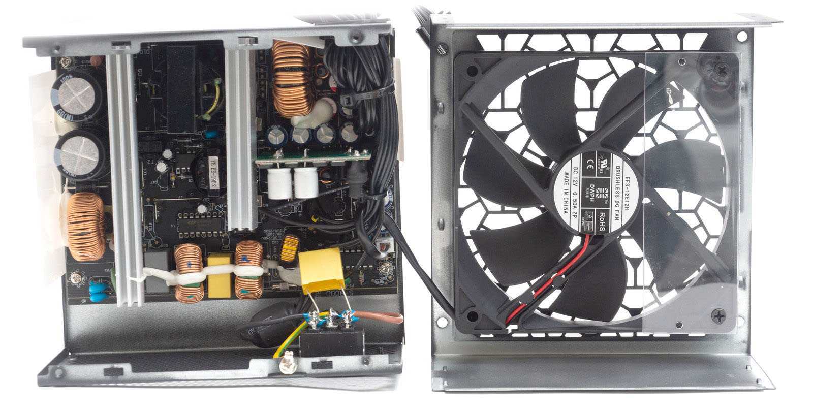 На втором радиаторе — четыре мосфета 03N06, формирующие линию +12 В. К этому же радиатору прикручен термистор, регулирующий обороты вентилятора.