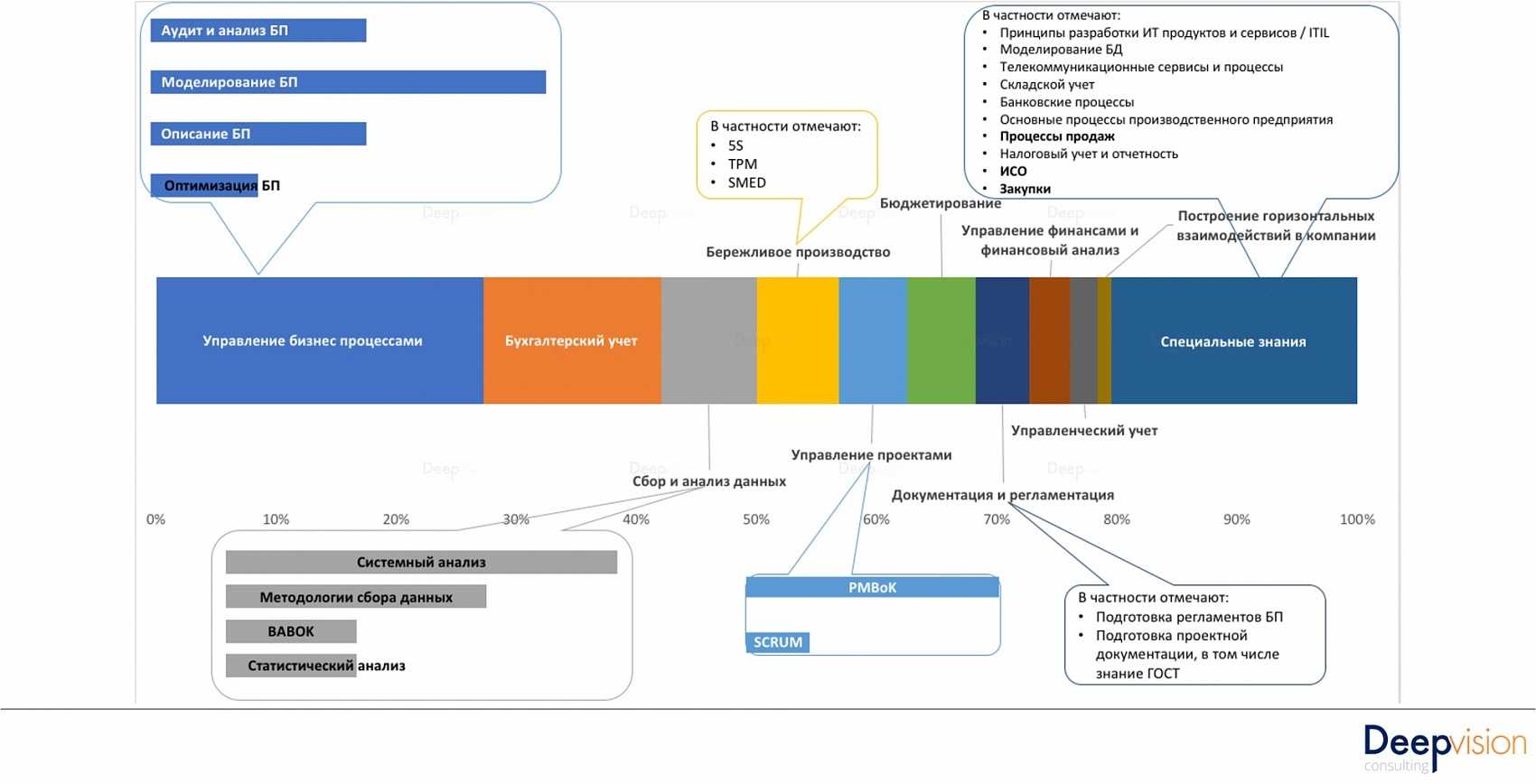 Безусловно, бизнес-аналитик и другие специалисты в области управления бизнес процессами должны обладать знаниями методик сбора и анализа данных, иметь представление о принципах бережливого производства, управления проектами, знать стандарты и принципы документации.