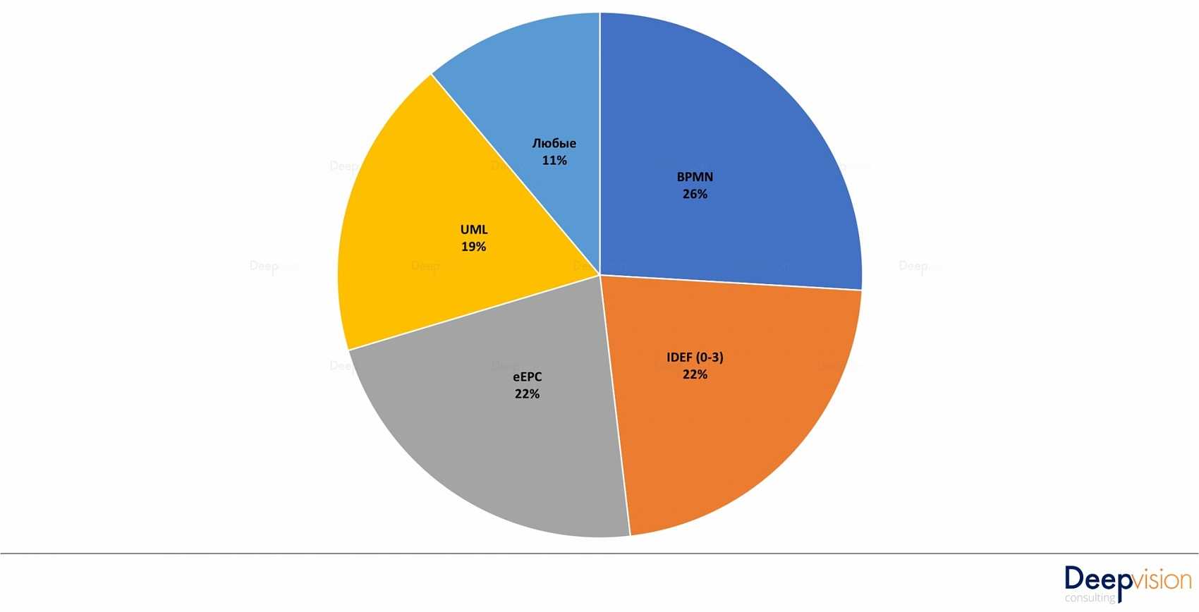 Ни один из специалистов по управлению бизнес процессами не может обойтись без знаний нотаций моделирования бизнес процессов. 26% работодателей хотят, чтобы их сотрудники знали и использовали самую современную нотацию — BPMN 2.0 Работодатели, желающие, чтобы их сотрудники знали нотацию eEPC, как правило, связывают это с выбором программного обеспечения, которое используется в компании для моделирования процессов. Требование к знанию нотации серии IDEF выдвигают компании, которые находятся только в начале пути управления бизнес процессами и просто не понимают, что это такое и с чем это едят.