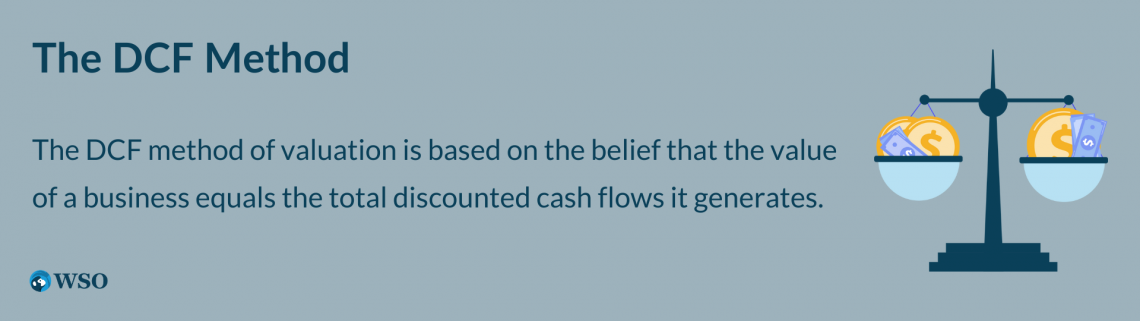 The DCF method of valuation is based on the belief that the value of a business equals the total discounted cash flows it generates.