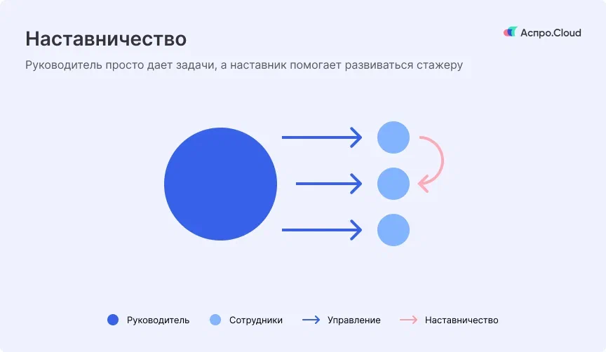 Наставник — коллега, который помогает выполнить задачу и не несет полной ответственности за результат.