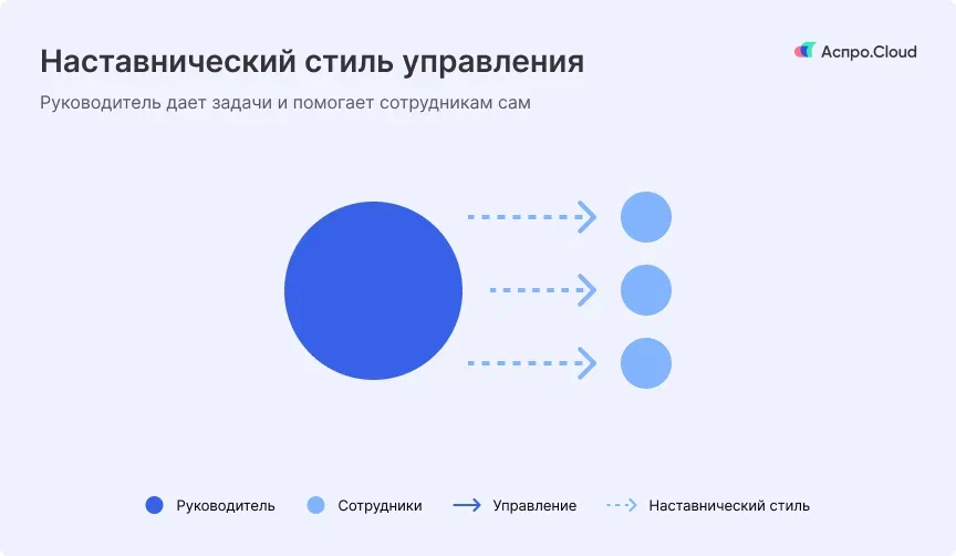 Руководитель, который использует наставнический стиль, не только управляет командой, но развивает сотрудников, выявляет их слабые места и определяет точки роста.