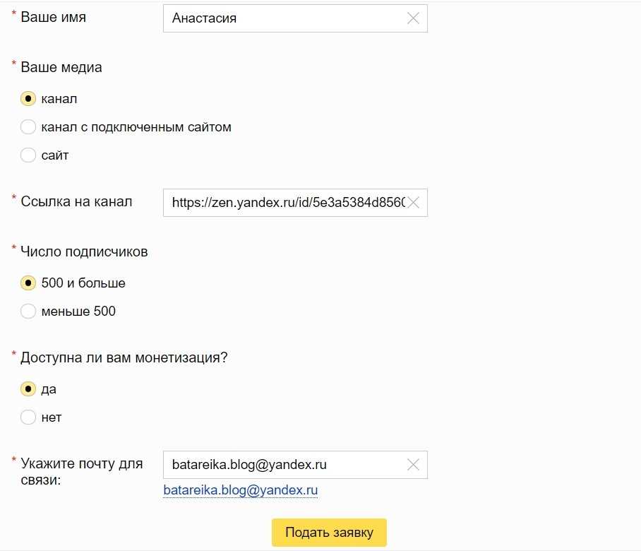 Чтобы попытаться попасть в Нирвану на Яндекс Дзен, нужно подать заявку: