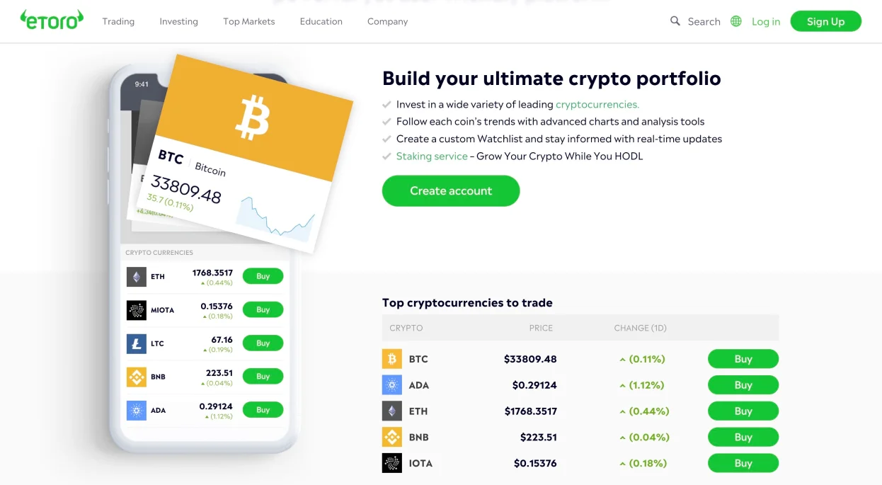 Что касается активов, то eToro предлагает широкий спектр криптовалют, от основных вариантов, таких как Bitcoin и Ethereum, до новых альткоинов. Платформа также предлагает другие финансовые инструменты, такие как акции, ETF, сырьевые товары и многое другое. Благодаря удобному интерфейсу, разнообразию предлагаемых активов и инновационным функциям эта биржа является самой комплексной в Европе.