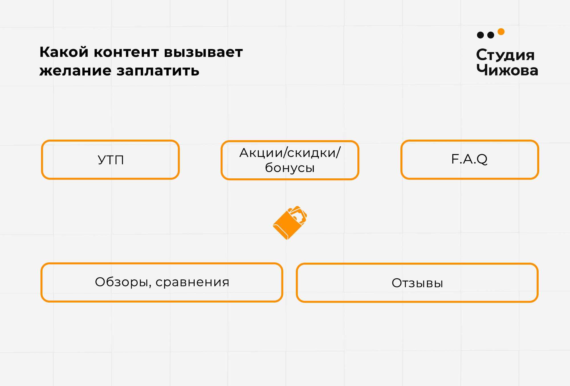 На этом этапе мы прогреваем человека к покупке. Это работа над тем, чтобы среди тысяч аналогичных продуктов человек предпочел именно ваш.