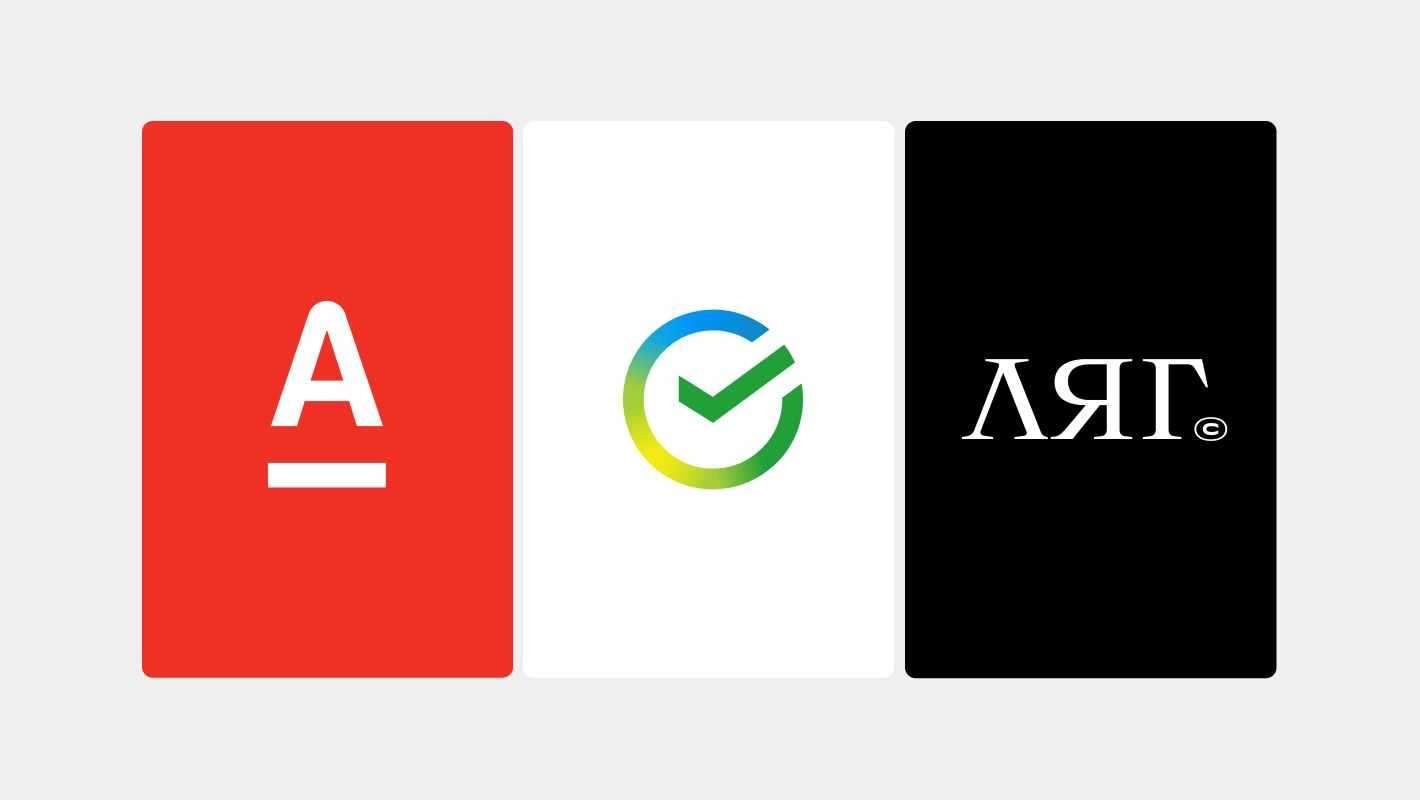 Логотипы Альфа-Банка, «Сбера» и массажной мастерской «Ляг.Спиной»