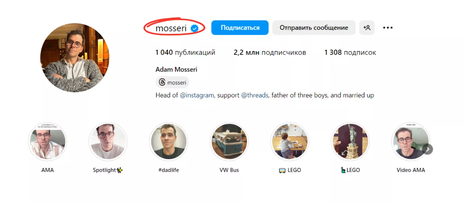 Инстаграм разработал этот инструмент для помощи известным людям и их почитателям. Благодаря значку, всегда можно безошибочно найти профиль нужного человека, выделив его из десятков ботов и фэйков.