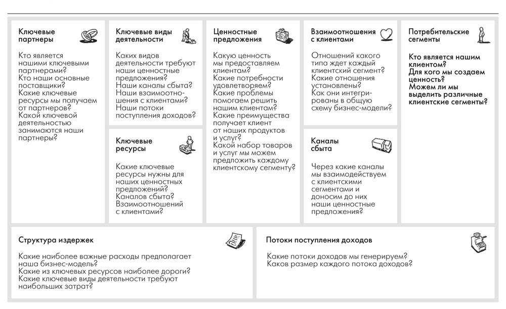 Модель Остервальдера включает девять блоков, которые нужно описать: