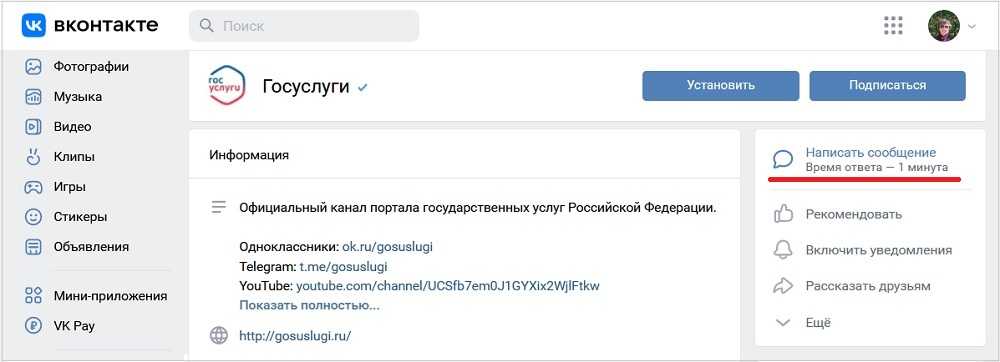 На страничке Госуслуг в социальной сети ВКонтакте можно написать сообщение со своим вопросом. Время ответа — одна минута (рис. 9). Это, скорее всего, означает, что отвечать будет искусственный интеллект.