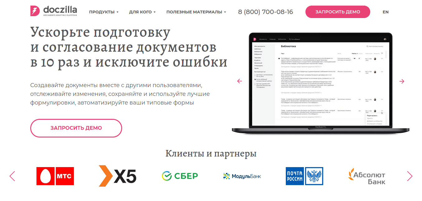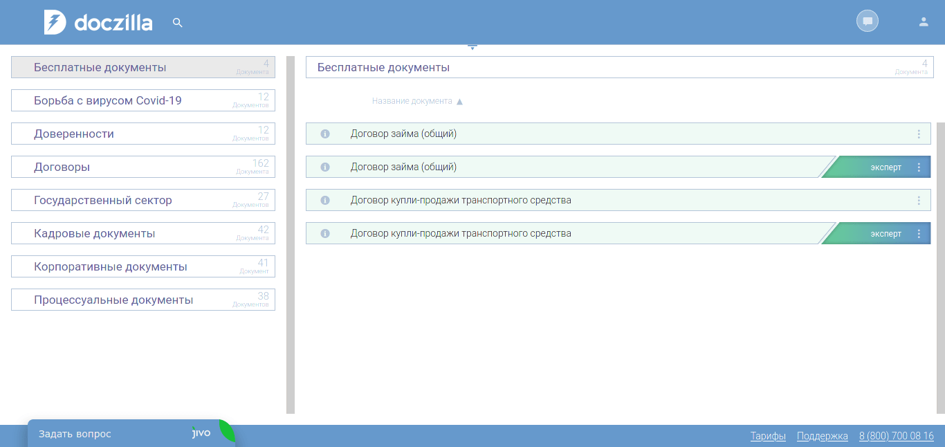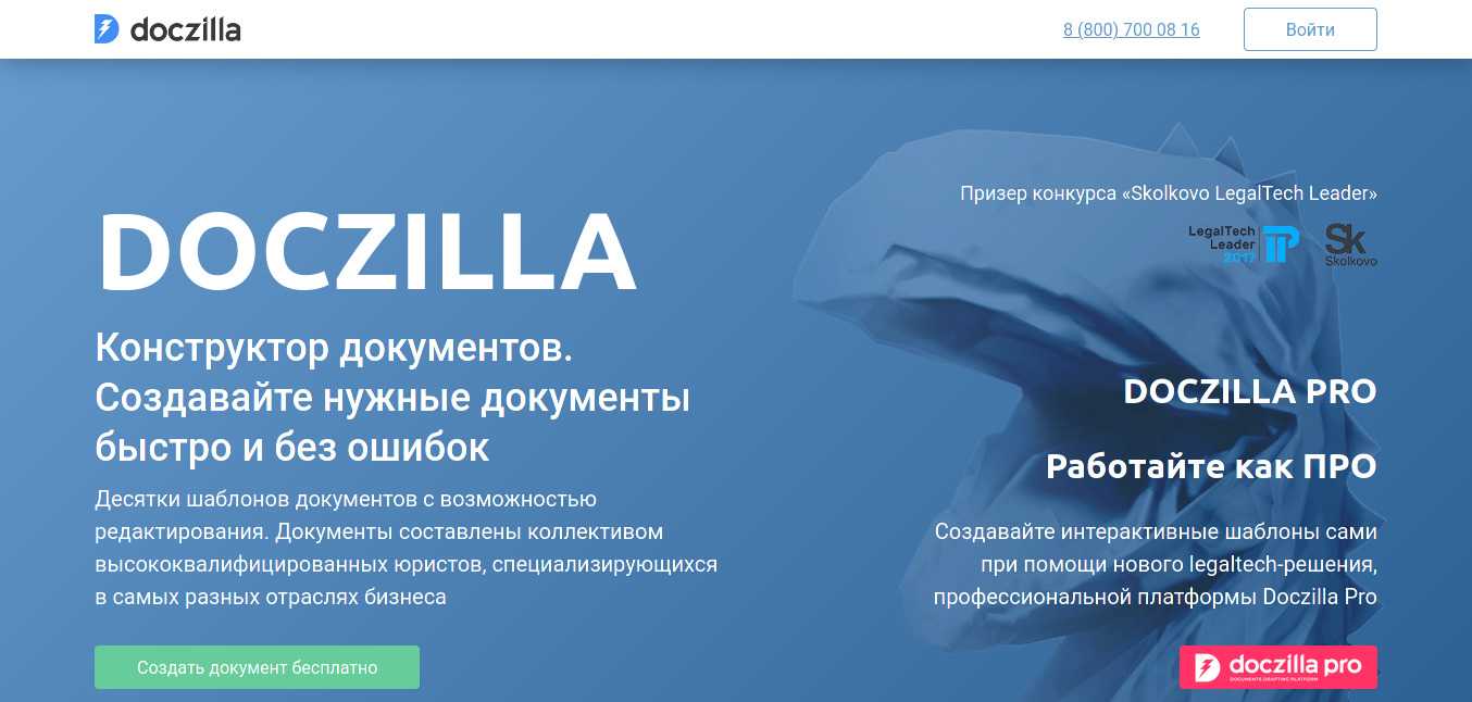 В компании работает большой штат юристов из самых разных отраслей. Благодаря этому конструктор от Doczilla подходит для всех: и для самозанятых, и для индивидуальных предпринимателей, и для юридических лиц, а также для государственных структур.