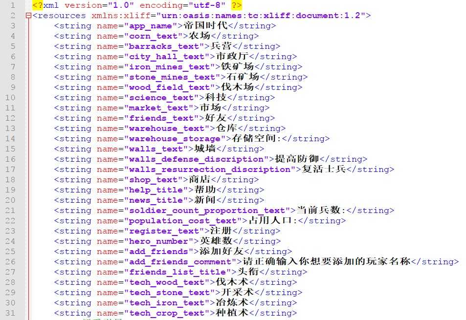 Некоторые технические файлы, вроде strings.xml из приложений для Android, помимо текста содержит названия переменных, выглядит это примерно так: