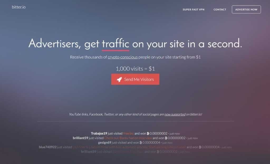 Bitter – иностранный букс для заработка криптовалюты. Регистрация через кошелек BTC, а после входа в личный кабинет, нужно установить браузерное расширение. Через него вы будете открывать список сайтов, которые можно посетить за вознаграждение. Администрация проводит лотереи для пользователей.