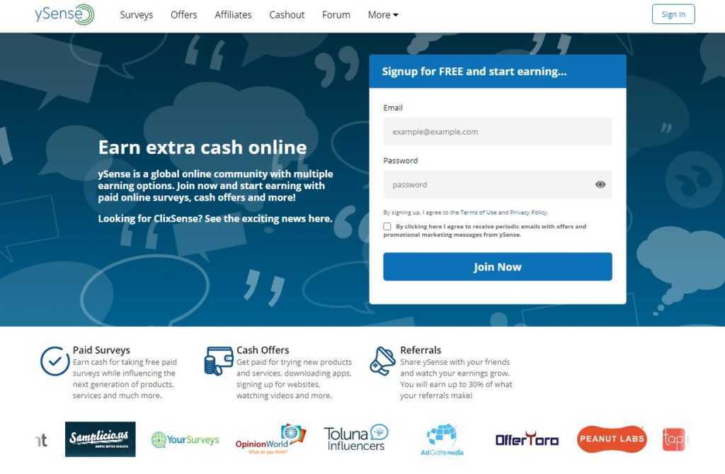 Ysense – раньше этот сайт назывался ClixSense. Здесь собирается много заданий, потому что они добавляются через сервисы партнёров. Кроме этого, доступен заработок на платных опросах и кликах. Вывод на PayPal, Skrill, Payoneer и подарочными картами Amazon.