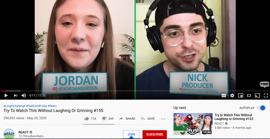 Популярный канал REACT призывает людей не смеяться при просмотре смешного контента.