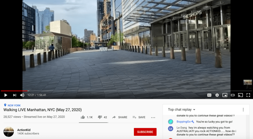 Не опасно ли выходить на большие пространства в вашем родном городе? Вы можете транспортировать себя вне дома в другой город или торговый центр или место. На YouTube есть контент для всего – поэтому неудивительно, что есть каналы, предлагающие виртуальные туры по популярным направлениям и туристическим достопримечательностям. Создатели контента, такие как ActionKid и 4K Vegas, снимают живое и готовое видео, прогуливаясь по горячим точкам, а во время блокировки COVID-19 выкладывают видеоролики, показывающие жуткие и пустые улицы крупных городов, таких как Нью-Йорк и Лас-Вегас.