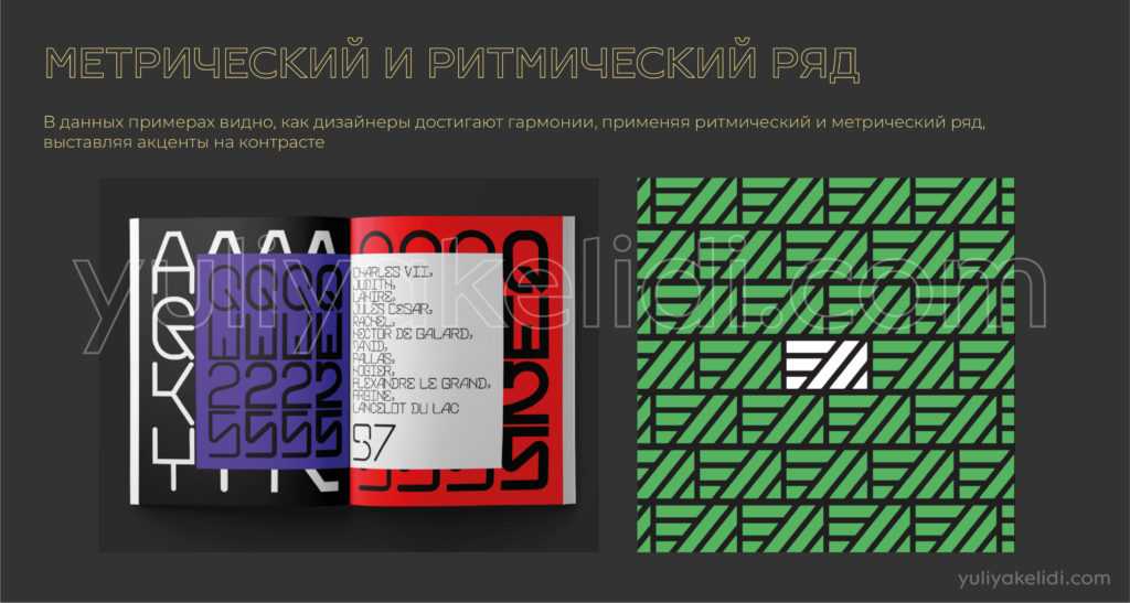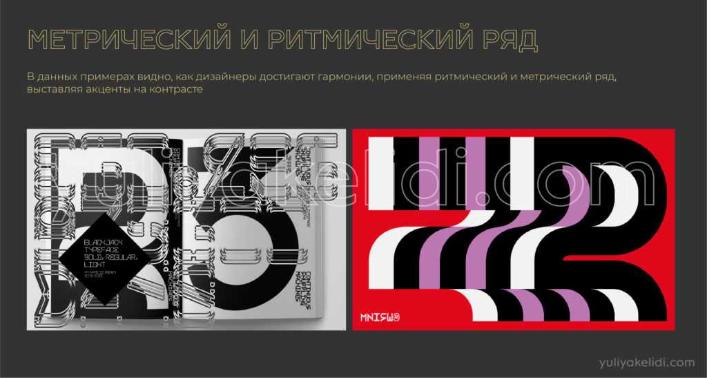 Если вам нужен спокойный, уравновешенный дизайн, если надо что-то структурировать, то можно элементы пустить метрическим рядом.