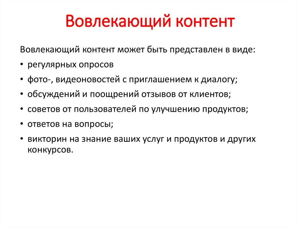 Взаимодействие с аудиторией. Контент – это прекрасный инструмент для установления взаимодействия с аудиторией, позволяющий получать обратную связь и участвовать в диалоге, что в свою очередь улучшает взаимопонимание и взаимодействие с клиентами.
