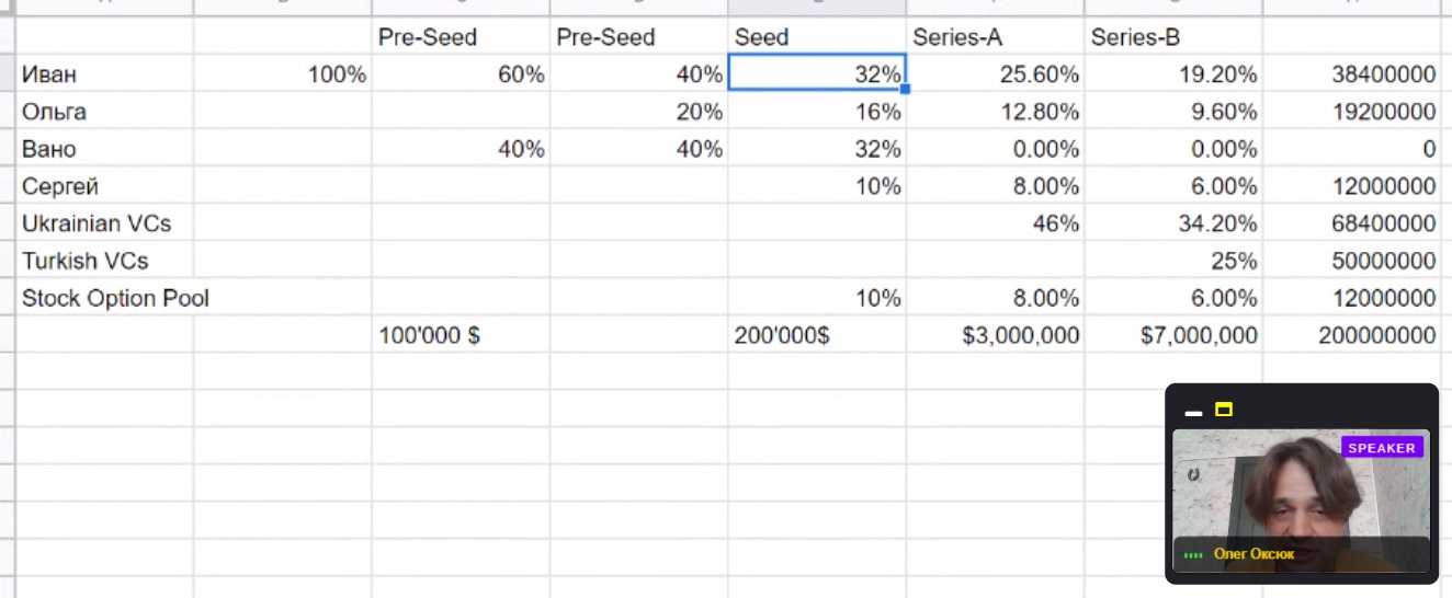 Спикер рассказал, что такое стартап изнутри и как создать стартап в Украине или за рубежом. Сделал он это на примере универсальной модели, подходящей для большинства известных стартапов современности. Олег наглядно изобразил различия между обычным бизнесом и стартапами, нацеленными на взрывной рост. Также он показал жизненный цикл стартапа и базовую схему понимания капитализации через Startup Capitalization Table. Кроме этого спикер остановился на главных причинах неудач 80% стартапов: слабой команде, недостатка определенных компетенций и ограниченности рынков.