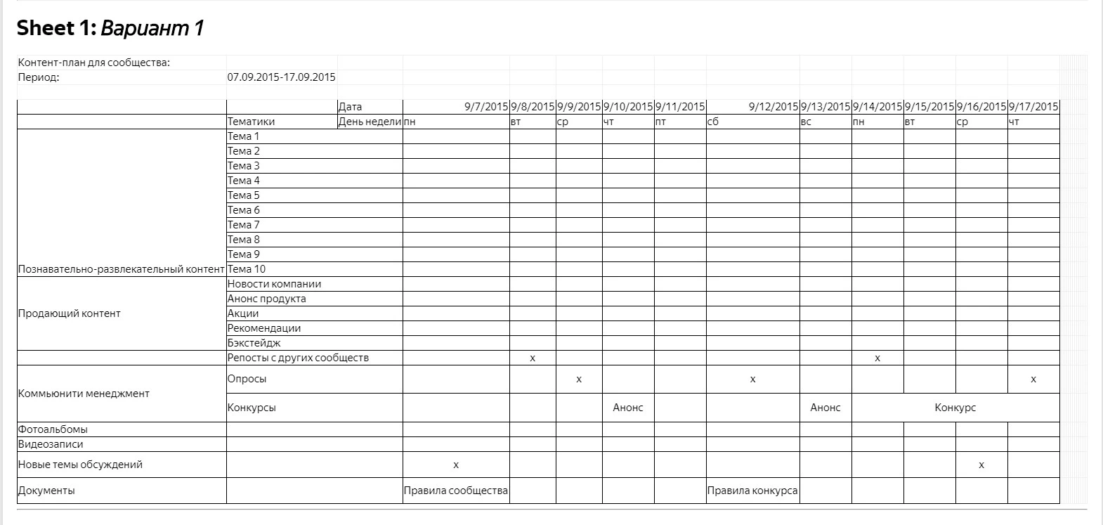 8. И напоследок, шаблон нашего контент-плана в Google Sheets