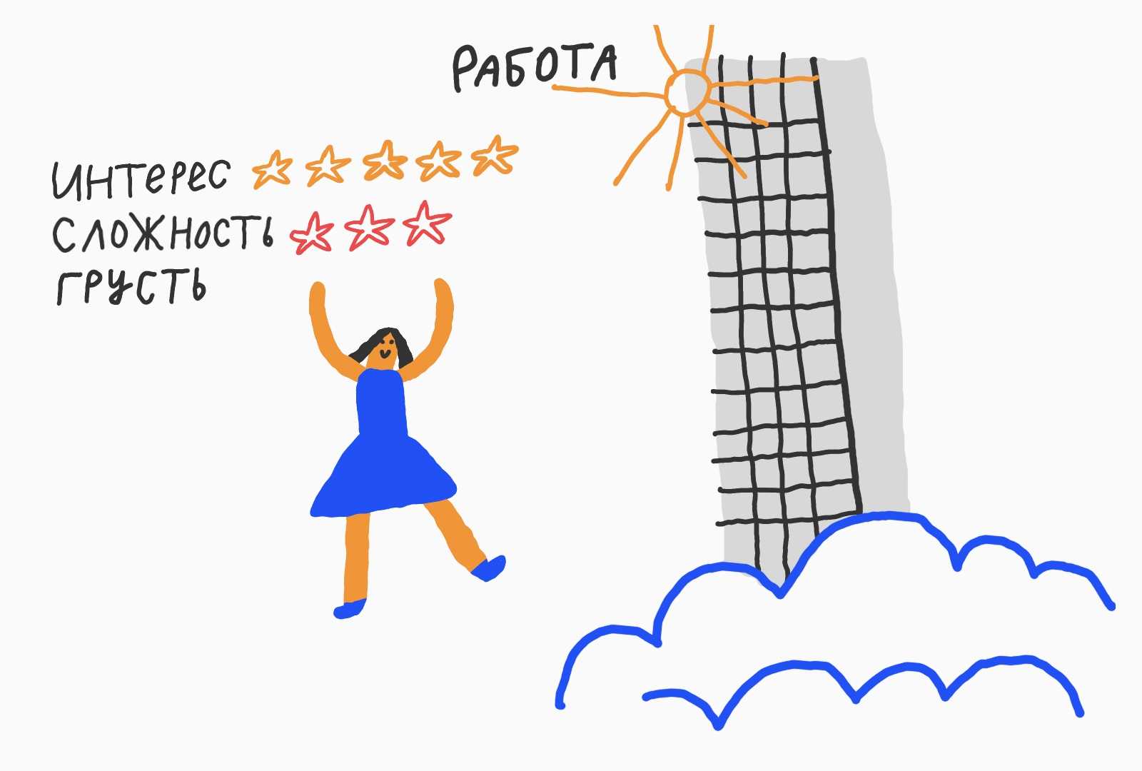 Тогда я не обращала внимания на сложность и не знала, почему мне ни с того ни с сего становилось грустно. А сейчас понимаю, что была в ситуации с очень высоким уровнем неопределённости. Какую задачу ни возьми — непонятно, как делать и к кому бежать. Неопределённость не проблема, когда её хотя бы 30% от работы. А когда у тебя вся работа — это один большой вопрос, эмоционально справляться с таким сложно.