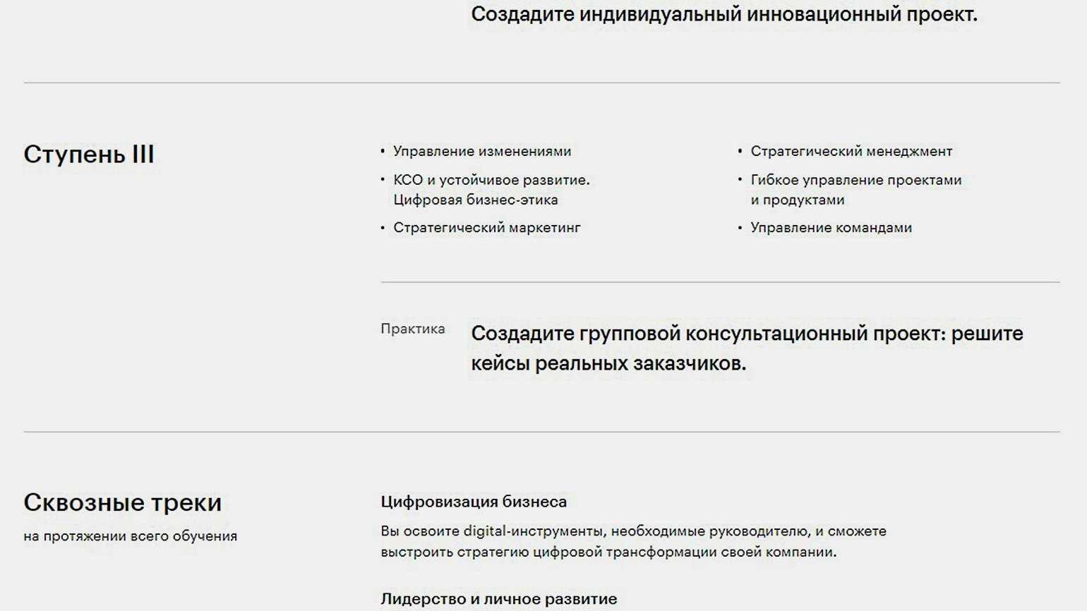 Практические занятия внедрены во весь процесс обученияСкриншот: MBA «Лидеры изменений»