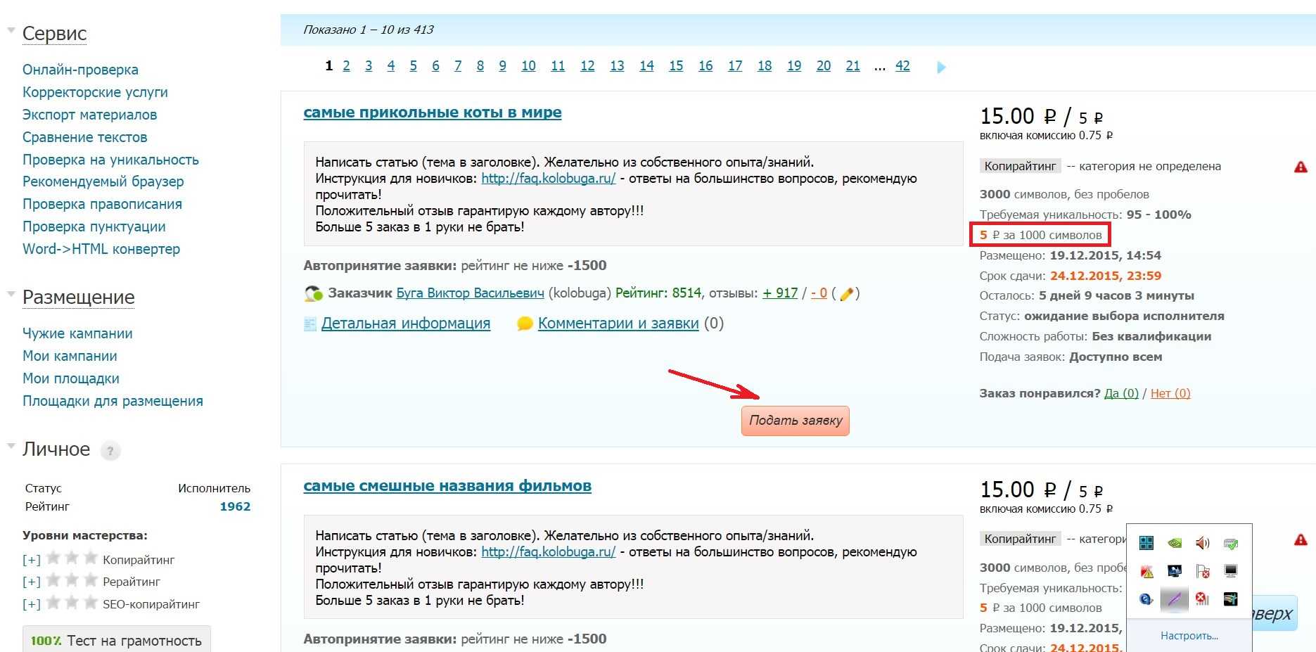 Пока что остановимся на заказах по 5 рублей (для поднятия рейтинга и чтобы набить руку на текстах):