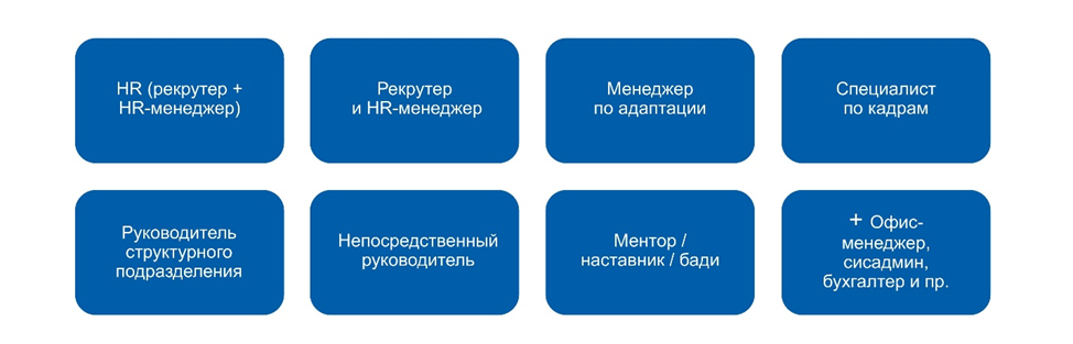 Роли, участвующие в процессе онбординга, могут быть совершенно разными, а само их наличие зависит от размера компании и ее специфики. Самое главное — как зоны ответственности распределяются по разным ролям.