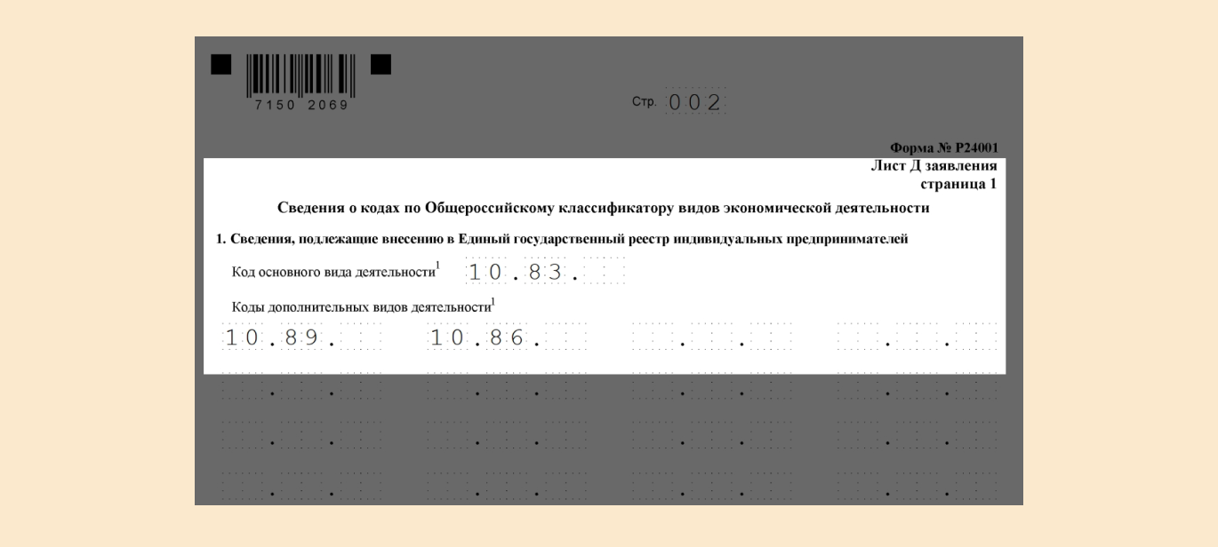 - на странице 1 – новые коды, которые хотим добавить в ЕГРИП;