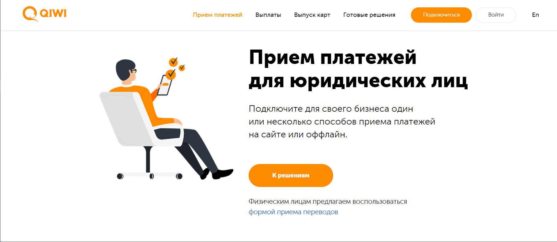 Для крупного бизнеса (более 10 миллионов рублей в месяц) предусмотрены индивидуальные тарифы. На Qiwi Кассе есть возможность управлять отчетностью, а готовая система API позволяет легко встроить данную систему в ваши CMS и CRM системы.