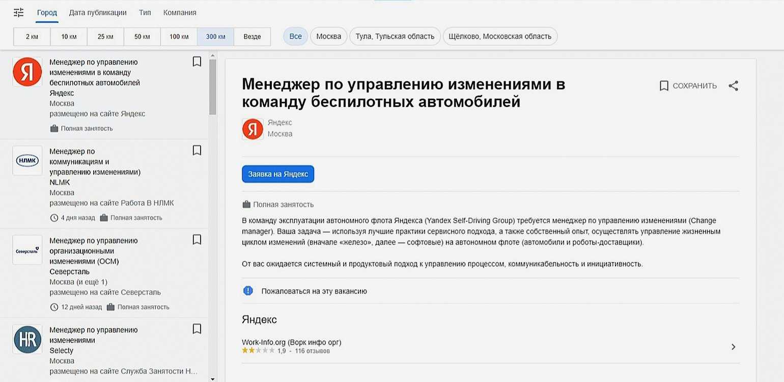 Объявления о вакансиях менеджеров по управлению изменениямиСкриншот: Skillbox Media