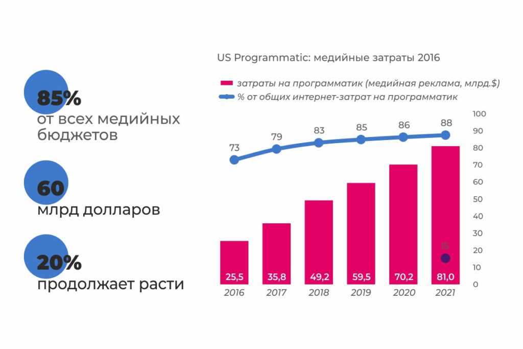 Каждый год доля программатика в рекламе растет, доля бюджетов увеличивается. С его помощью можно купить любую аудиторию в любой точке мира. Можно автоматизировать размещение и пользоваться данными для инсайтов, гипотез, тестирования и персонализации маркетинга.