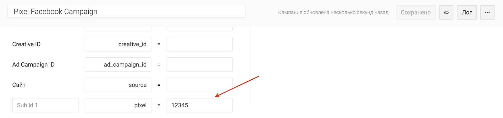 Как передать id пикселя статически прямо в кампанию, если мы не хотим передавать его от источника в URL?