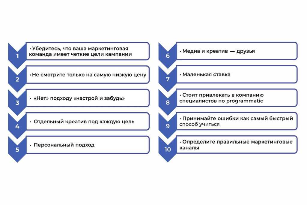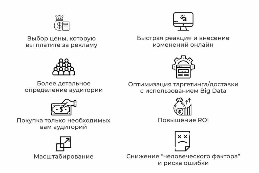 Programmatic реклама — это инструмент, способный упростить жизнь маркетологам и специалистам в контекстной рекламе. Полностью автоматизированные процессы сэкономят время и усилия. Преимущества программных кампаний в том, что ее можно добавить к существующей стратегии продвижения как дополнительный канал.