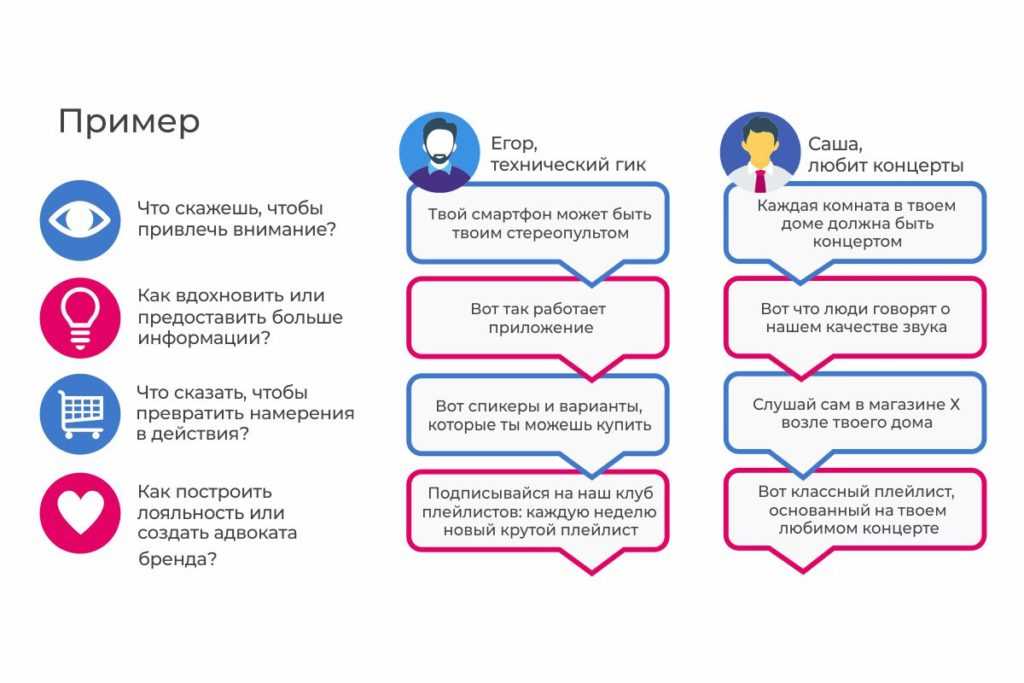 В зависимости от стадии воронки, поведенческих паттернов, интересов коммуницировать с людьми нужно по-разному.
