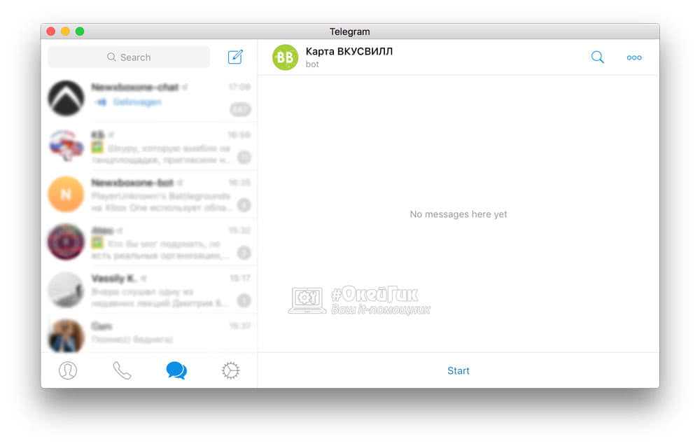 Далее откроется страница бота, на которой для начала взаимодействия необходимо нажать «Начать» или «Start».