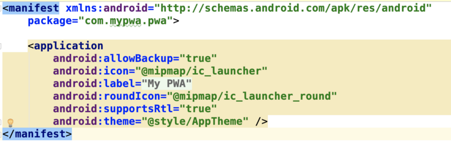 Наконец, нужно открыть app/res/values/styles.xml и внести некоторые изменения в тему, чтобы она выглядела как PWA: