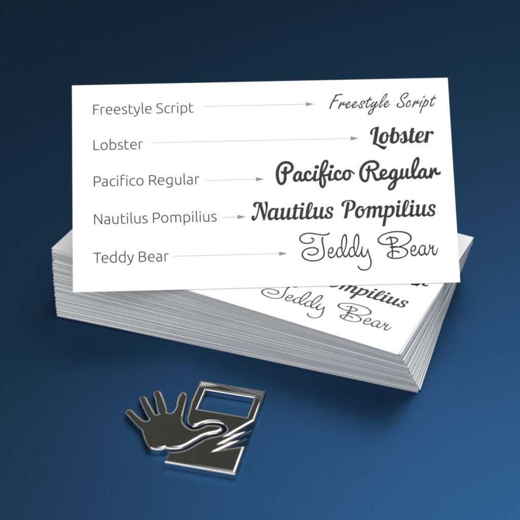 Фигурные. К ним в первую очередь относятся рукописные варианты. Название шрифтов этой группы говорит само за себя – буквы имеют сходство с буквами, написанными от руки. Они имеют эффектный, красивый внешний вид, но их читабельность нельзя назвать идеальной. Для деловых визитных карточек такие стили обычно не используются, а вот представителям творческих профессий для своих промоматериалов применять их вполне можно. Исключение может составить случай, когда способы начертания для визиток подбираются в соответствие с фирменным стилем. Это касается и шрифта для логотипа визитки