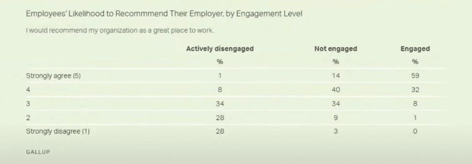 Один из отчетов Gallup показал соотношение результатов опроса eNPS и вовлеченности. По его данным, видно, что у невовлеченных сотрудников меньший процент лояльности. И наоборот, у вовлеченных работников больший процент лояльности к компании.