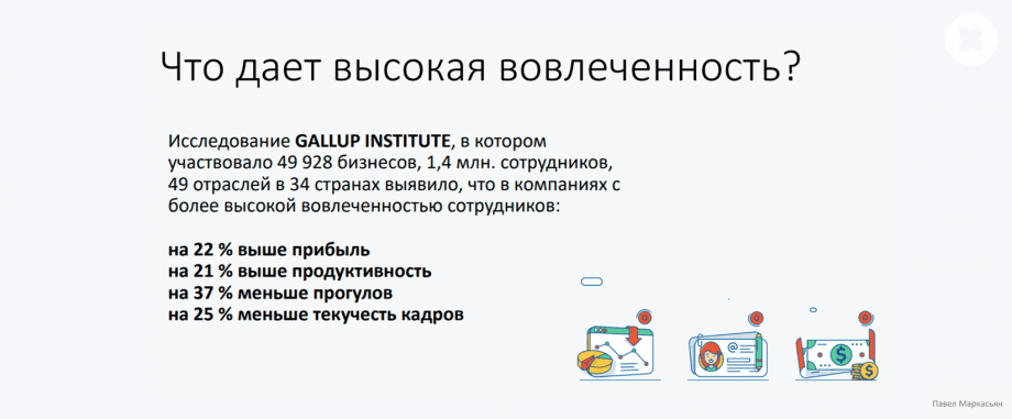 По результатам аналитики компании Gallup, США теряет больше $550 млрд из-за низкой вовлеченности сотрудников. Компании недополучают дополнительную прибыль по причине того, что сотрудники не выкладываются на полную и работают с меньшей эффективностью.
