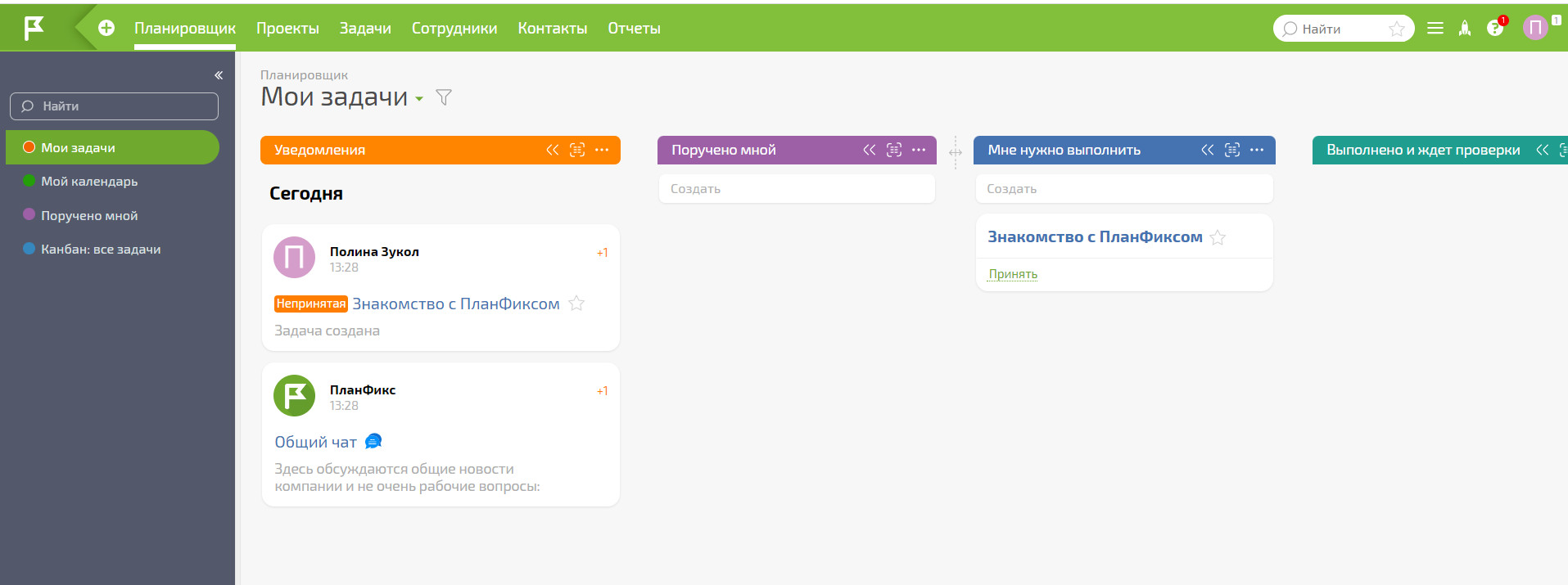 - Дашборд с быстрым доступом к основными пунктам, чтобы узнавать, что происходит в ваших проектах, списках и задачах.