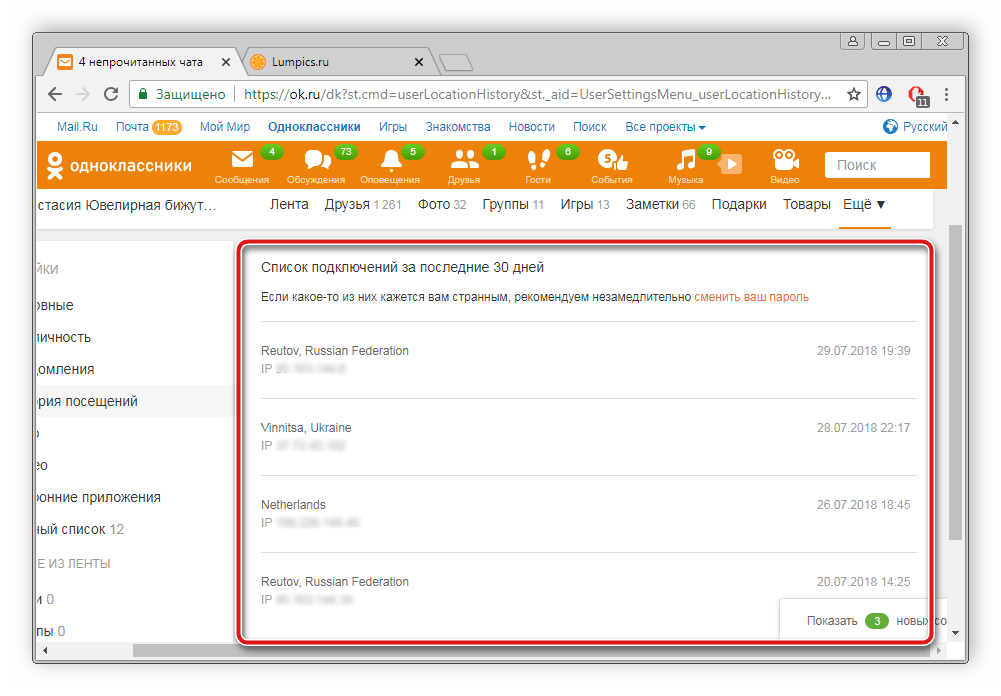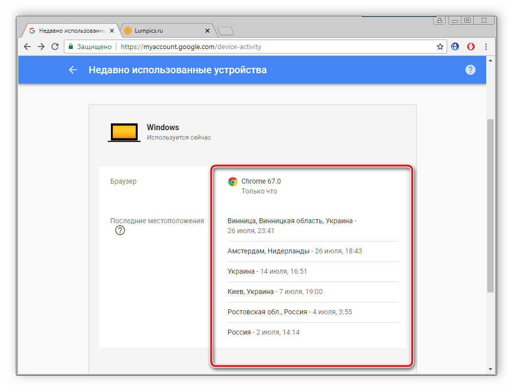 В новом меню отобразится список активности за последние тридцать дней. Найдите необходимое подключение, узнайте населенный пункт и IP-адрес. Такая информация поможет следствию в поисках.
