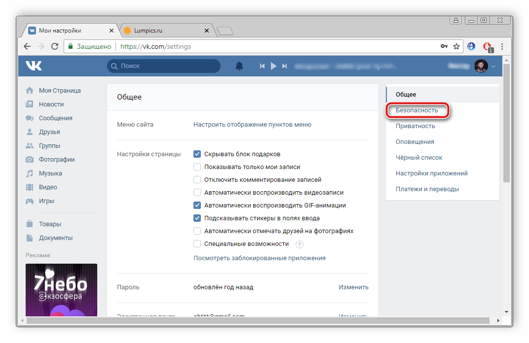 Перейдите в раздел «Безопасность».