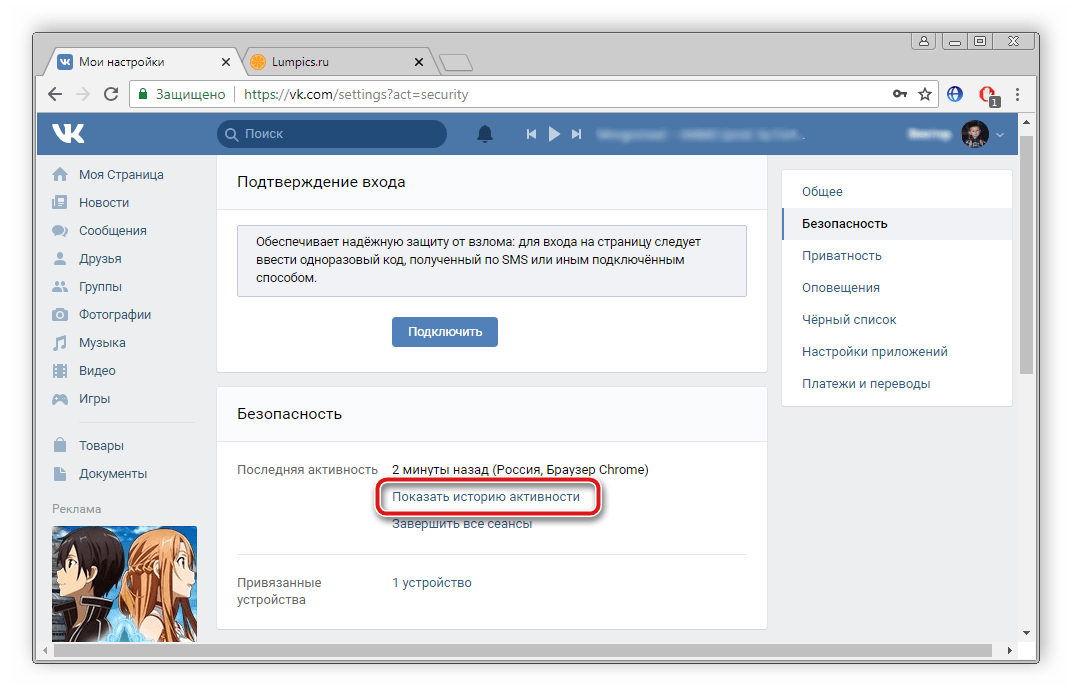 Откройте полный список подключений нажатием на «Показать историю активности».
