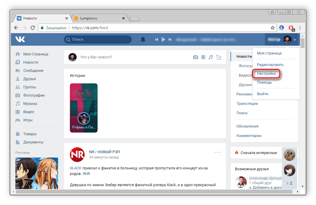 - Нажмите на свою аватарку справа вверху, чтобы открыть всплывающее меню. В нем выберите пункт «Настройки».