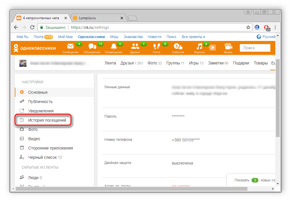Здесь выберите раздел «История посещений».
