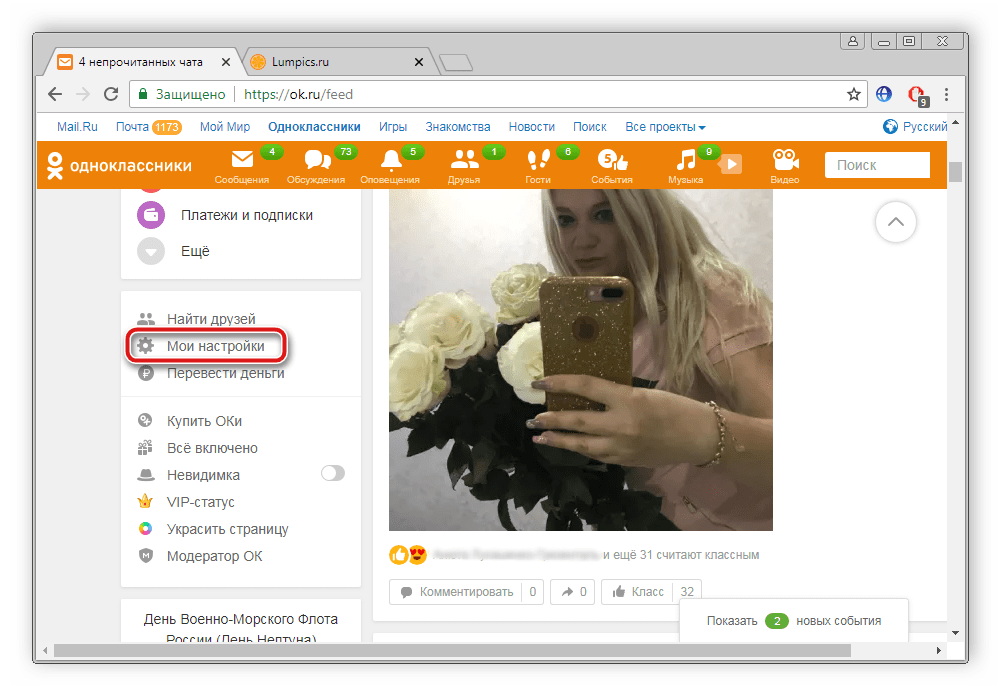 - На главной странице опуститесь вниз, найдите меню «Мои настройки»и перейдите в него.